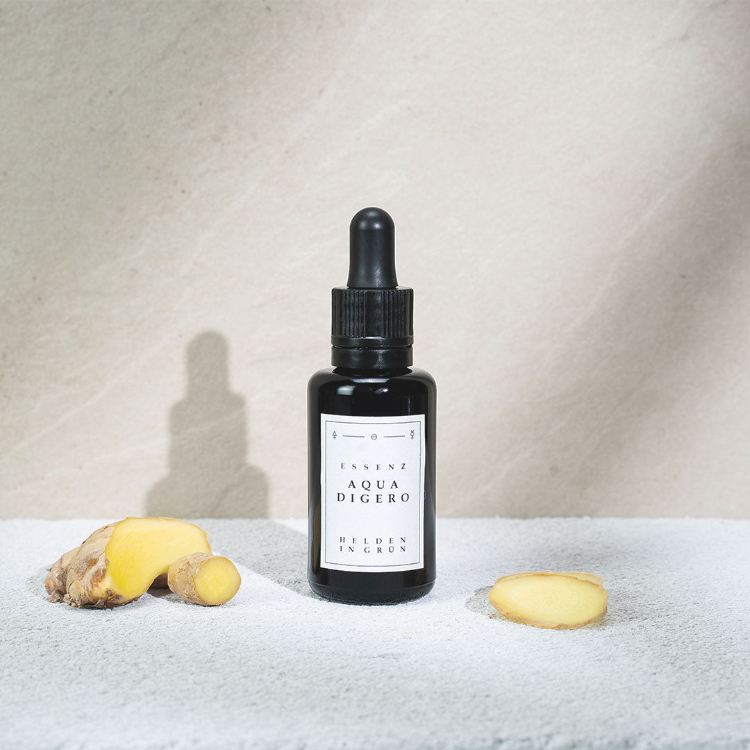 Das Aqua Digero verwandelt Schwere in Leichtigkeit. Die kräftigen Aromen von Kümmel, Selleriesamen und Koriander in Kombination mit Ingwerwurzel und ihrer sanften Schärfe lösen Blockaden, bevor sie zur Belastung werden und bringen den Organismus wieder in Bewegung.
