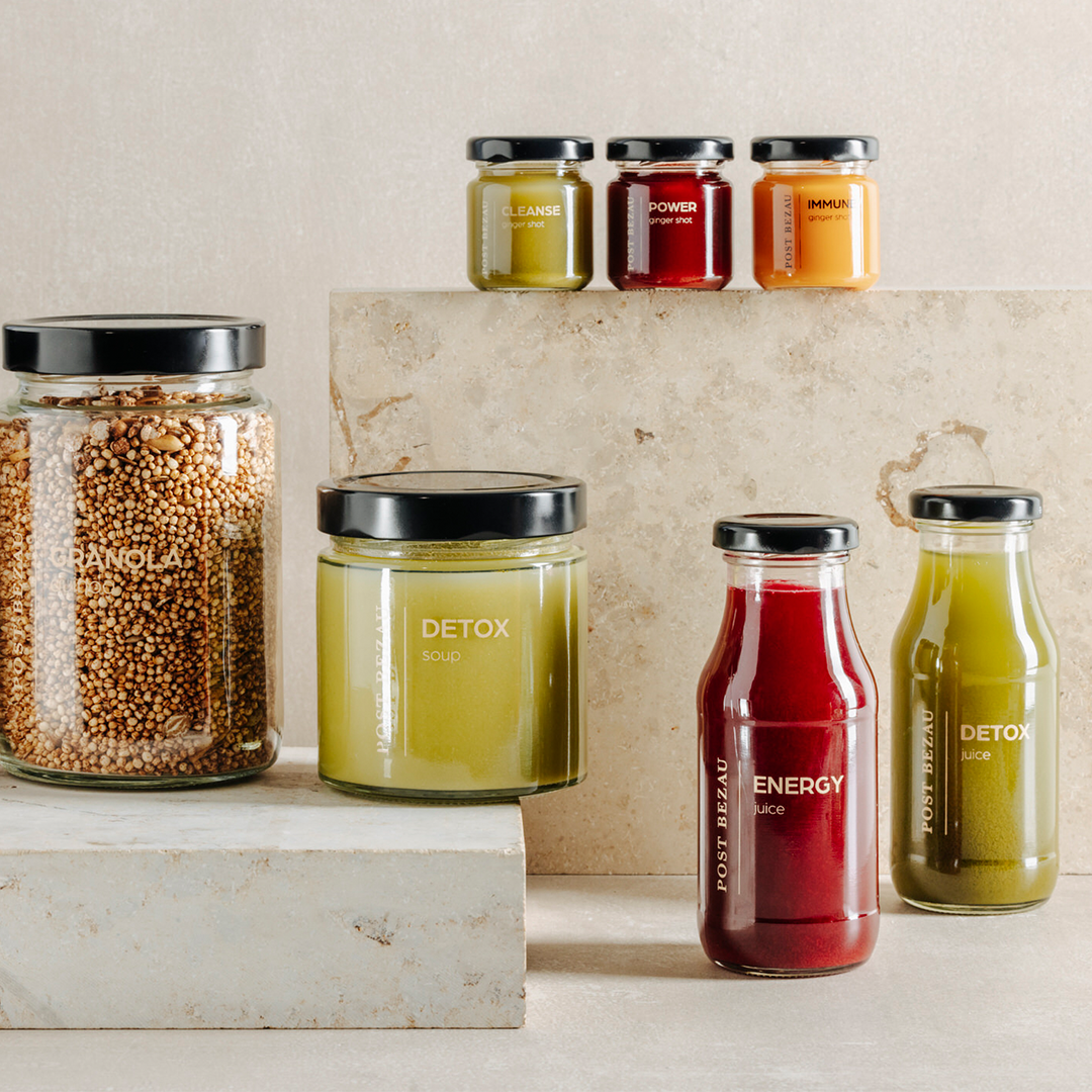Sie bekommen Suppen, Säfte, Shots und Granola für 3, 5 oder 7 Tage. Starten Sie mit einem leckeren Granola-Frühstück in den Tag (zum Beispiel gemeinsam mit Früchten, Joghurt oder Milch). Über den Tag verteilt haben Sie zusätzlich zwei leckere Suppen (die Sie nur noch einmal erwärmen müssen), ein Juicing aus frischem Obst und Gemüse sowie einen Ingwer Shot für extra Energie zur Verfügung.